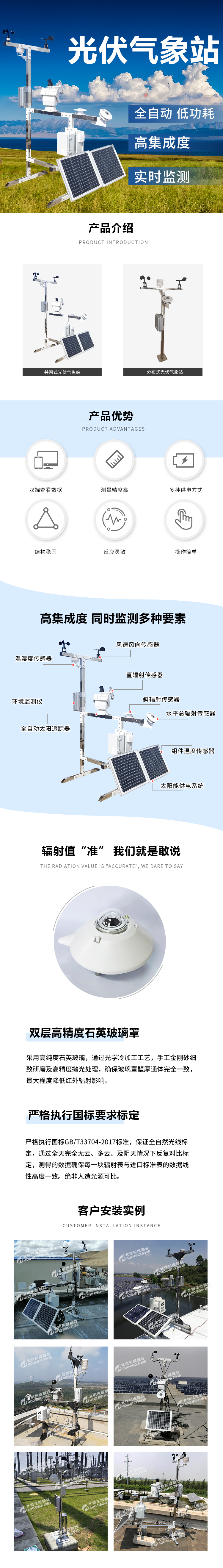 小型自動(dòng)光伏氣象站監(jiān)測(cè)系統(tǒng)由數(shù)據(jù)收集服務(wù)器、數(shù)據(jù)分析平臺(tái)、數(shù)據(jù)傳輸系統(tǒng)、物聯(lián)網(wǎng)傳感器、固定支架(選裝GPRS無(wú)線傳輸系統(tǒng)、太陽(yáng)能供配電系統(tǒng)、電瓶)等構(gòu)成。