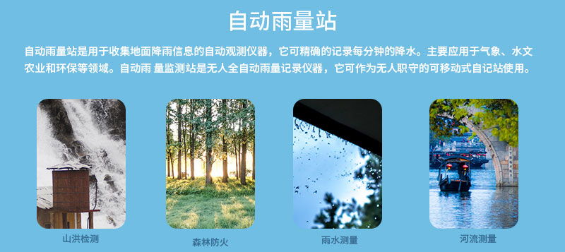 一體化雨量監(jiān)測(cè)站集成降雨量計(jì)設(shè)計(jì)合理、準(zhǔn)確、可靠,外觀美觀,使用方便,可以通過(guò)后端計(jì)算機(jī)設(shè)置各種參數(shù)并接收數(shù)據(jù)。電池采用大容量、高可靠性的充電電池。根據(jù)現(xiàn)有水行業(yè)標(biāo)準(zhǔn)設(shè)計(jì)了自動(dòng)氣象降雨利用數(shù)據(jù)接收軟件實(shí)現(xiàn)了遠(yuǎn)程參數(shù)的設(shè)置、讀取、數(shù)據(jù)讀取和數(shù)據(jù)處理。一體化雨量降水?dāng)?shù)據(jù)也是水資源分析和評(píng)價(jià)的重要信息,一個(gè)地區(qū)的降水規(guī)律是其生態(tài)環(huán)境的重要標(biāo)志,在經(jīng)濟(jì)發(fā)展中起著重要作用,自動(dòng)雨量監(jiān)測(cè)站是一種自動(dòng)降雨記錄儀,可作為移動(dòng)式自動(dòng)記錄站使用,具體的講,所述雨量簡(jiǎn)為國(guó)標(biāo)雨量筒,所述雨量筒分布設(shè)置在公路雨量監(jiān)測(cè)點(diǎn)。